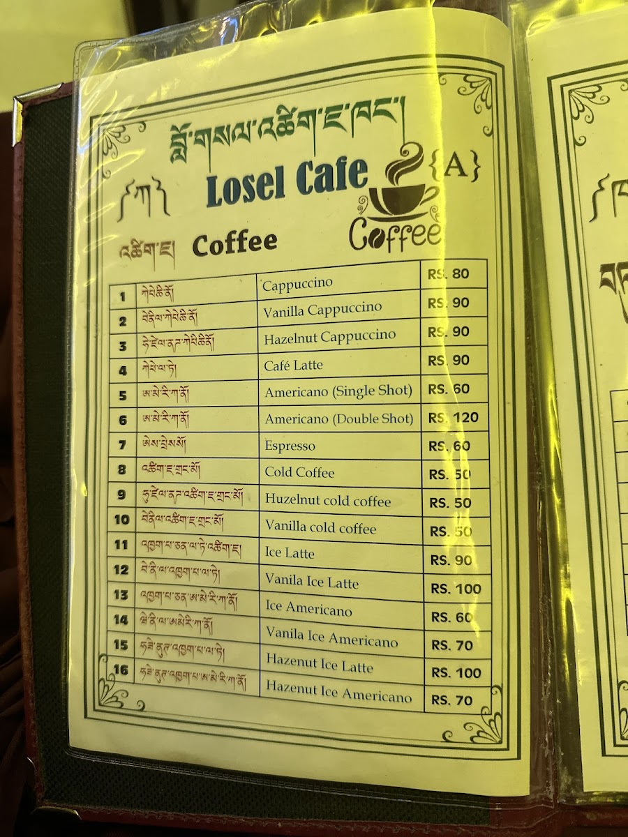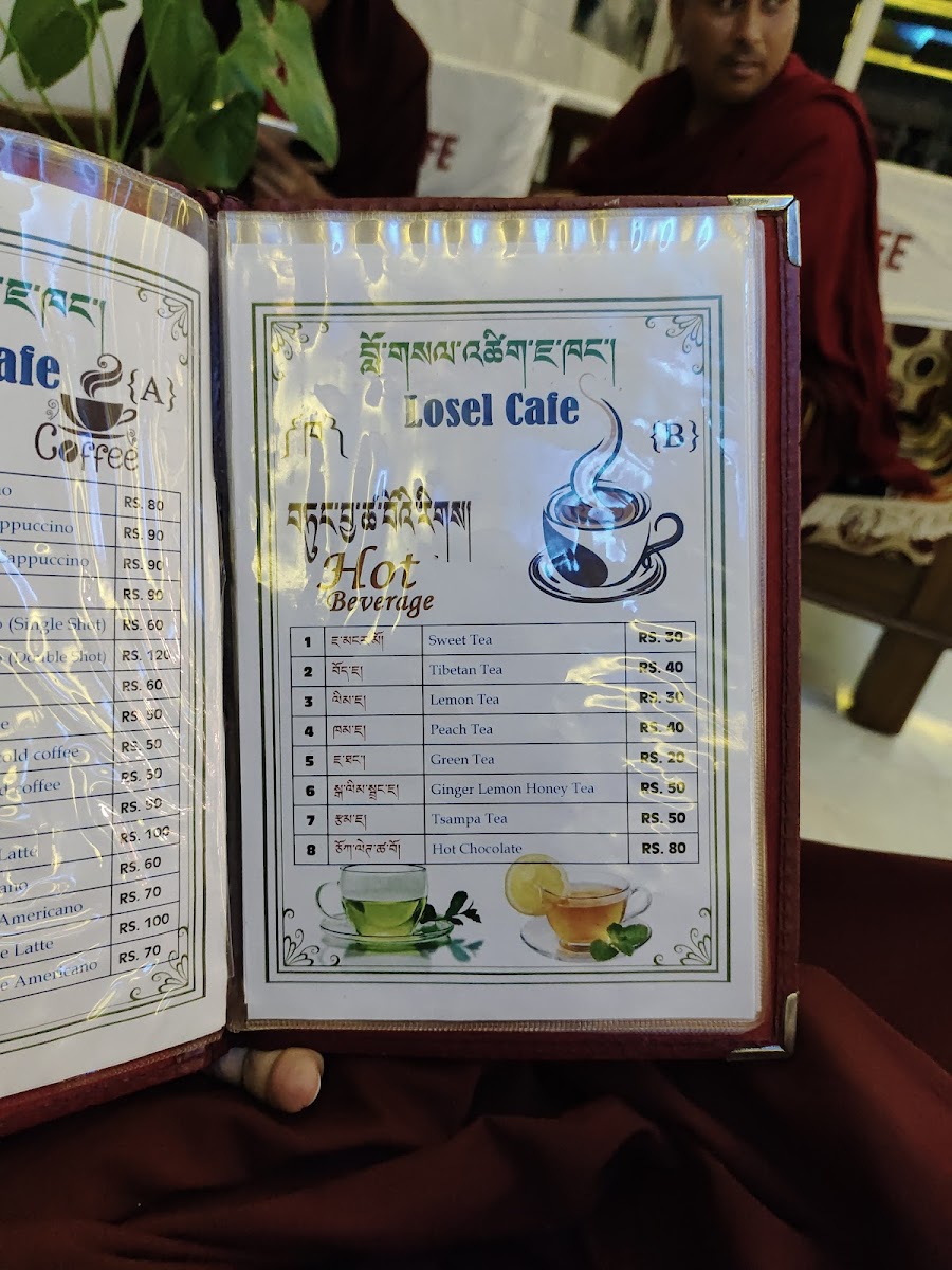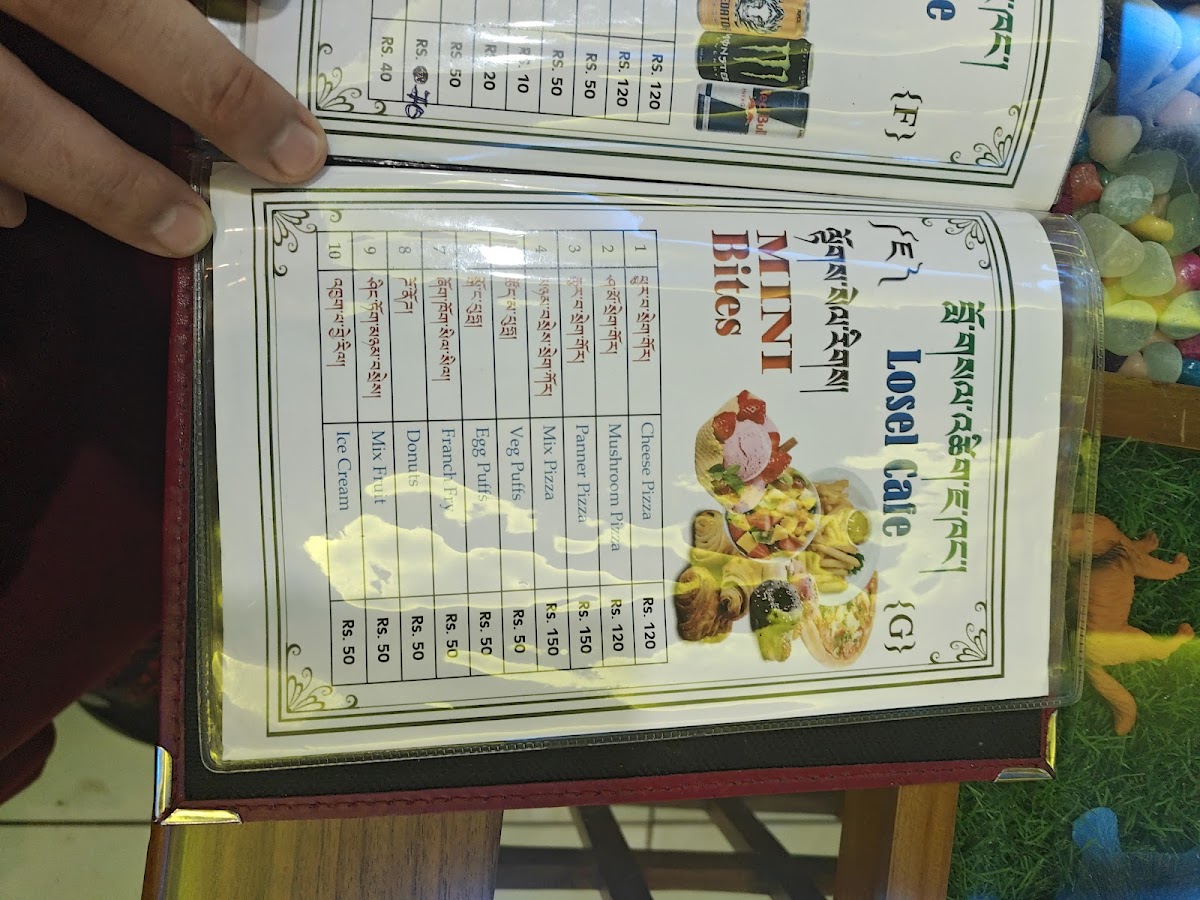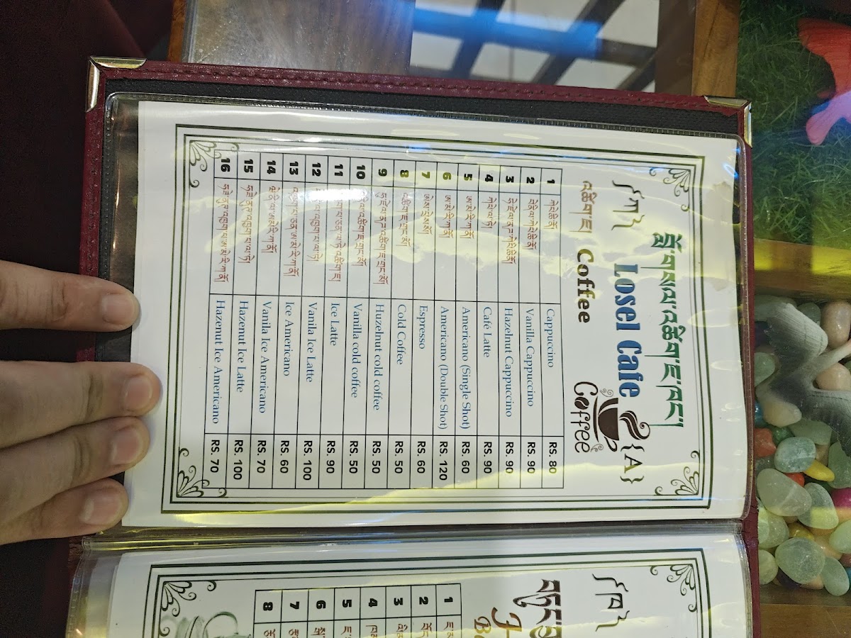 The menu at Losel Cafe offers a variety of food and beverage options suitable for breakfast, casual dining, or light meals. The menu is organized into several sections, providing choices for different tastes and preferences.
