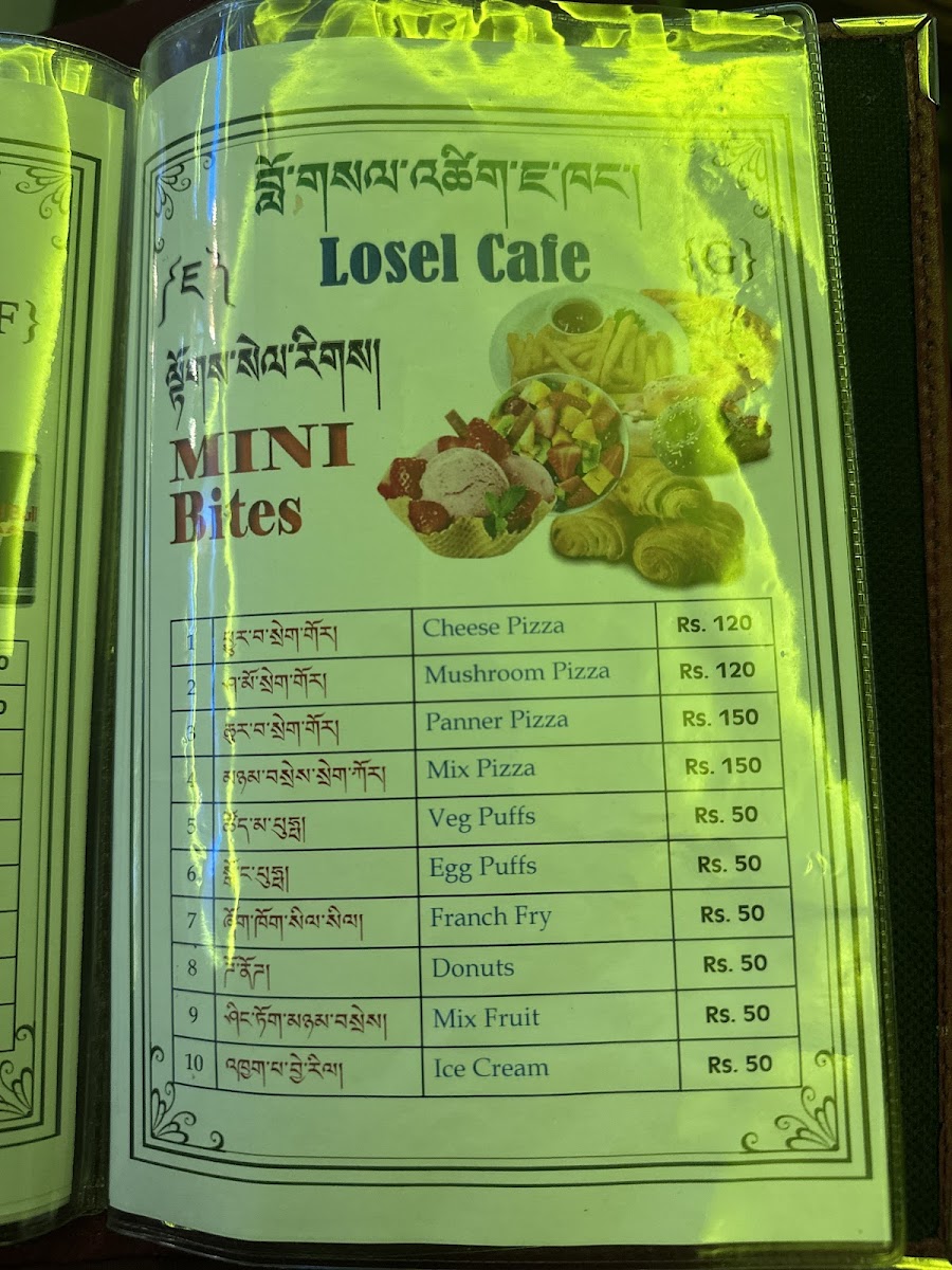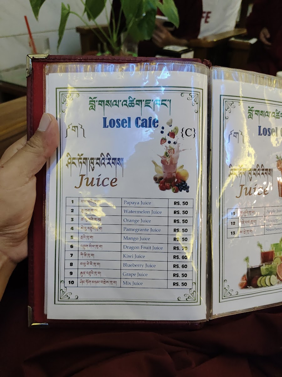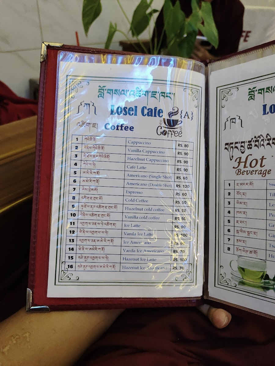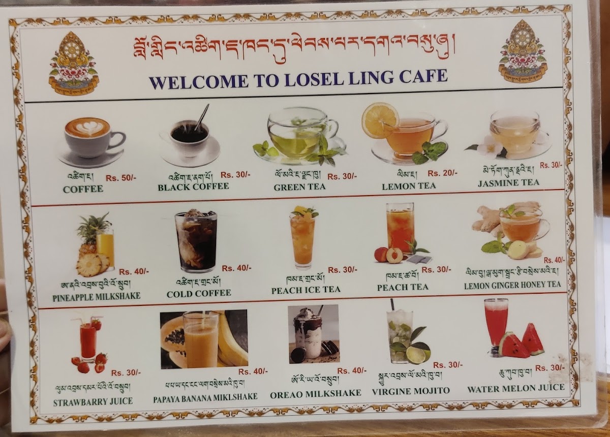 The menu at Losel Cafe offers a variety of food and beverage options suitable for breakfast, casual dining, or light meals. The menu is organized into several sections, providing choices for different tastes and preferences.